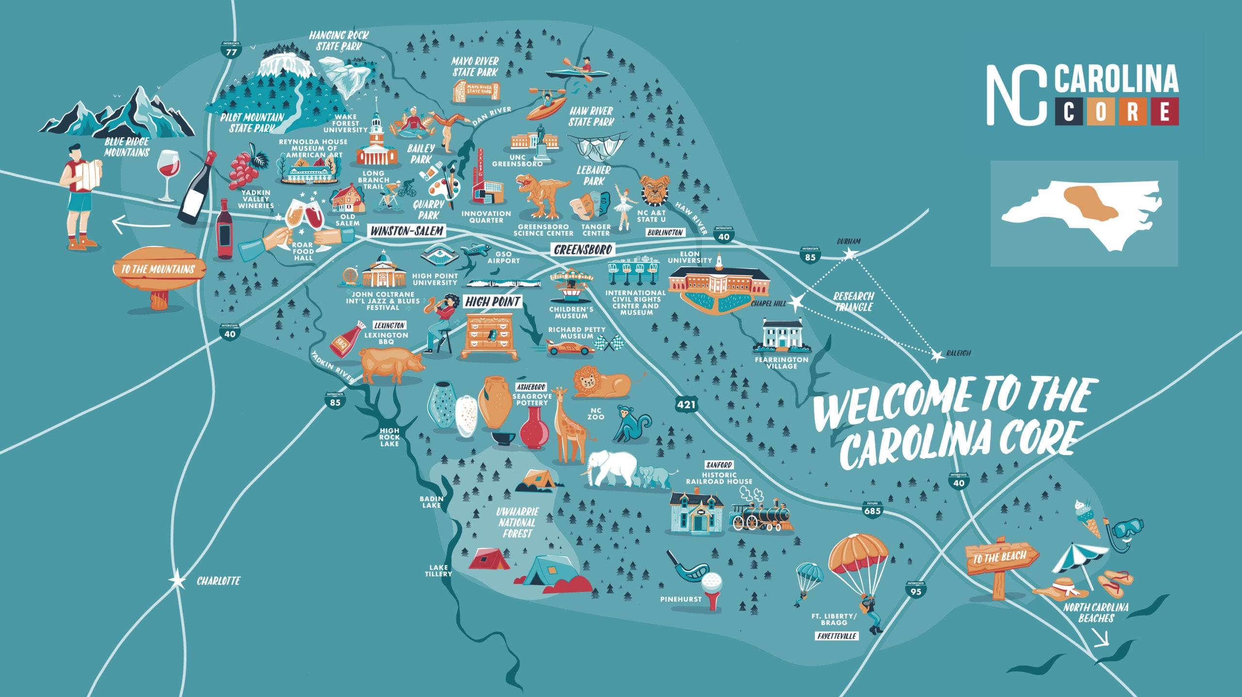 At core of North Carolina, discover a vibrant and diverse region experiencing undeniable momentum. Centrally located between Charlotte and the Research Triangle, the Carolina Core stretches more than 150 miles — connecting west of Greensboro, High Point and Winston-Salem to Fayetteville.